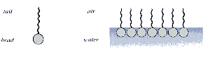 Diagrammatic representation of highly magnified surfactant molecule at air/water interface