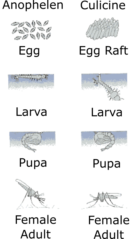 LIFE CYCLE OF ANOPHELENE AND CULICINE MOSQUITOES